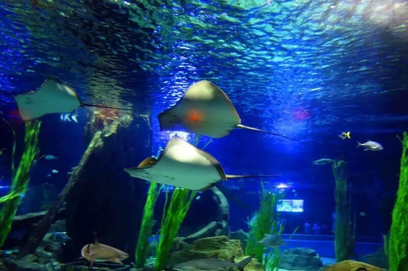 这里的海底隧道最为吸引人,步入蜿蜒曲折的海底隧道仿佛已经置身海底,各种漂亮的鱼群就在身边,偶尔还能见到大海龟从头顶游过。