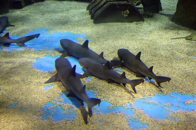 这里还有一条稍长一点的海底隧道,大大小小的鲨鱼在游动或者睡觉,三条鳐鱼扑闪着“翅膀”在头顶一圈一圈的飞,别忘了和它们合影哟!