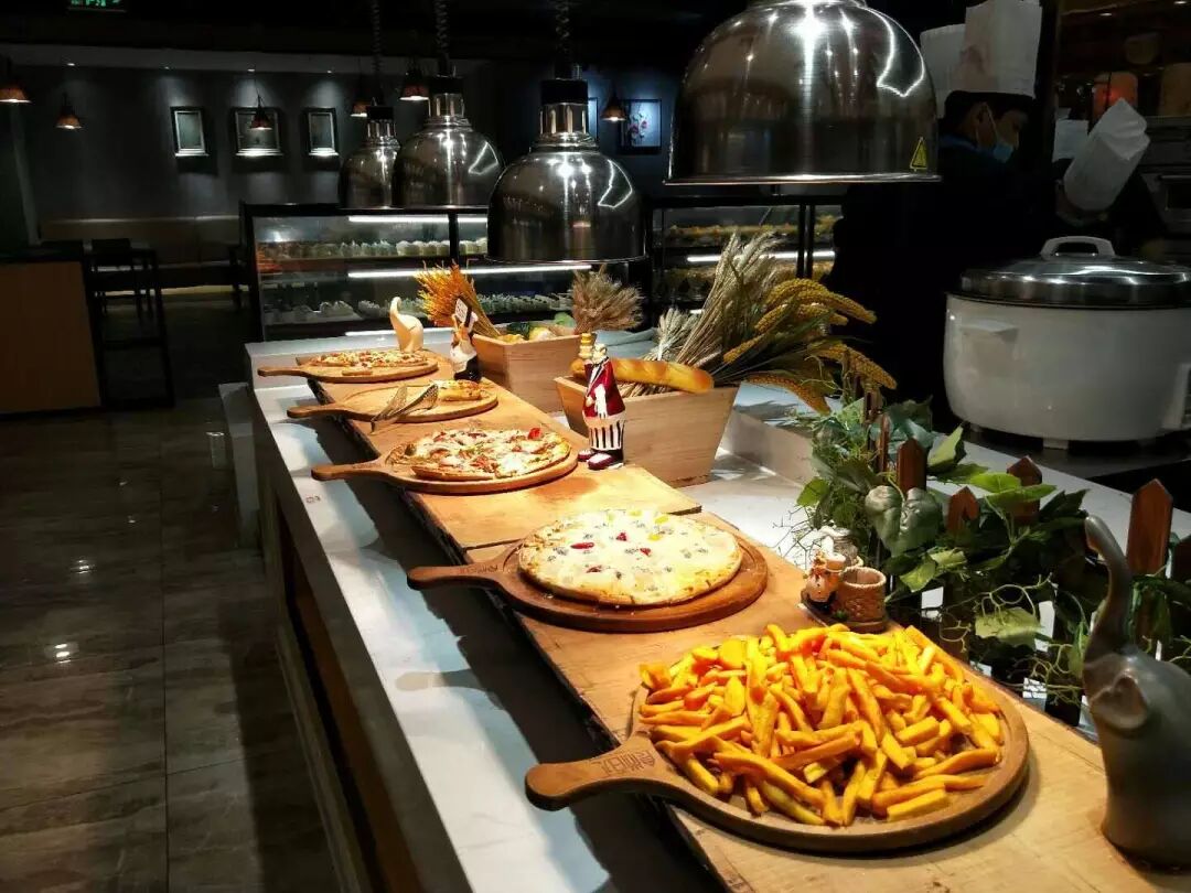 本餐厅有美式烤肉、火锅、南美烤肉、法式铁板烧、披萨、蛋挞、各类精美蛋糕、鲜榨果汁、粗粮蒸品、风味小吃、川粤凉卤、酒水、饮料、营养汤羹、四季鲜果、韩国烤肉、中西甜点、时令海鲜、特色牛排等十三大类二百余种美食。