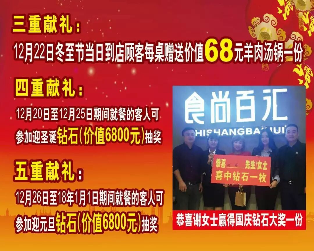 食尚百汇是安岳首家特大型涮烤一体的自助餐厅,经营面积1500平米,环境时尚优雅,可同时容纳500人畅饮畅吃。目前在全国各省市设有分店,受到当地美食爱好者的一致好评。