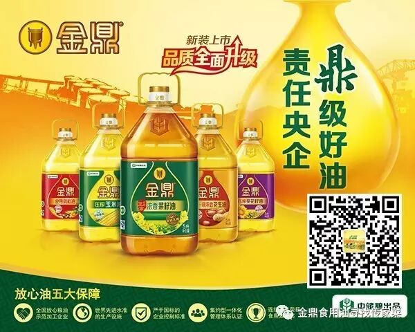 为维护国家食品安全,中储粮推出“金鼎”系列食用油品牌,依托强大粮油产业链,致力于为广大消费者提供安全透明的食用油产品。