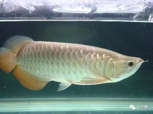 金龙鱼那雄俊优美的体态、宽大的鳞片、泛蓝的底色、灿烂的金框显示金甲武士凛然不可侵犯的英风。其鳃盖上的抹纯金,透出华丽富贵气象。![]()