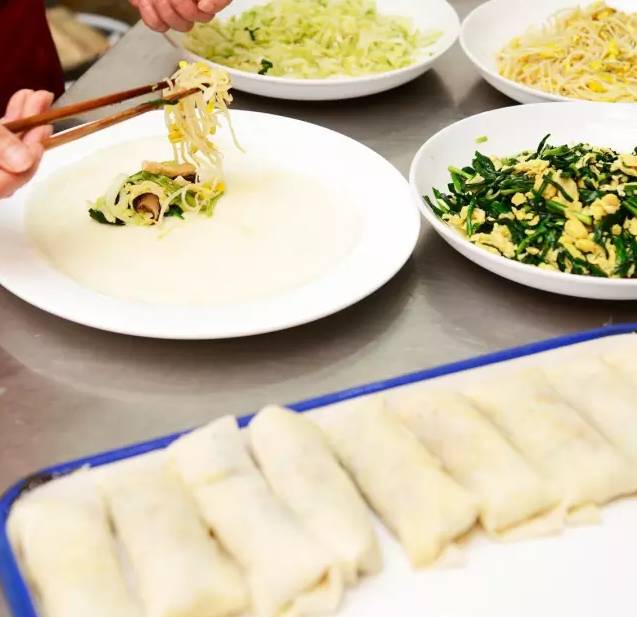 薄饼是卷饼的一种,在《舌尖上的中国II》的“脚步”一集中,几乎总结了中国各种卷饼的形式。在端午前后,松阳也有吃薄饼的习俗,取当地的时令食材,把蔬菜肉食各炒一盘,摆上一桌,包进一张薄薄的面皮中,便是美味的薄饼宴。如今,薄饼宴已不是端午特有,每逢节日或喜事,好客的松阳人也会用薄饼宴招待客人。