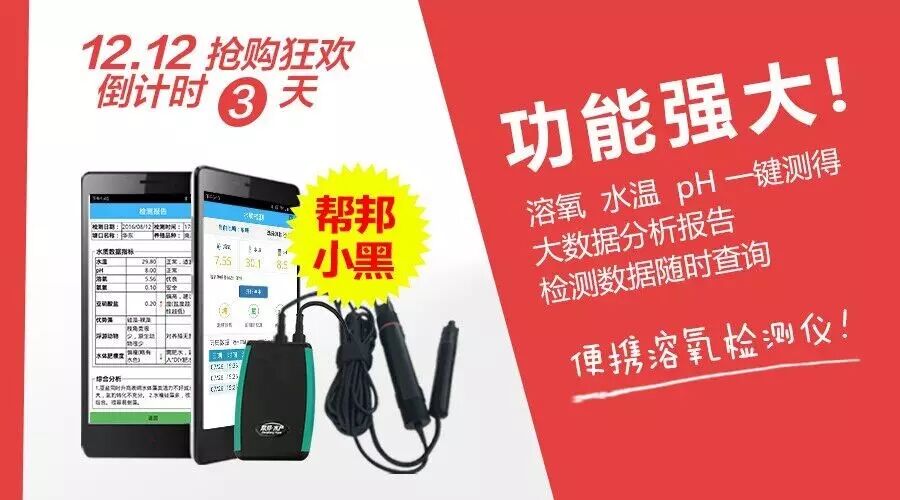 巡塘只能靠经验和猜测?帮邦推出巡塘必带神器——“帮邦小黑升级版”,只需几秒钟,塘口溶氧、水温、pH轻松掌握!便携,智能,简单,实惠。点击“阅读原文”查看详情!