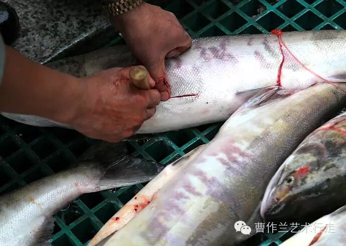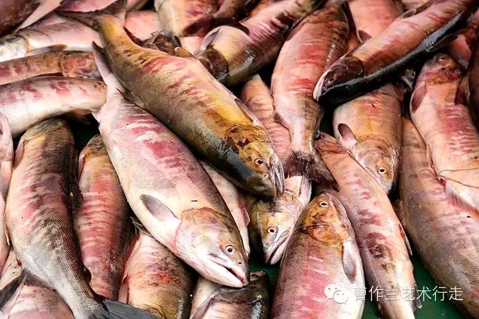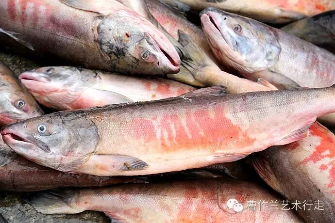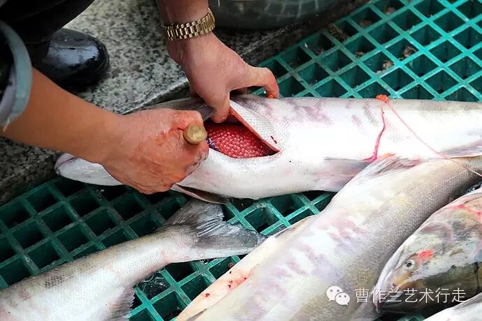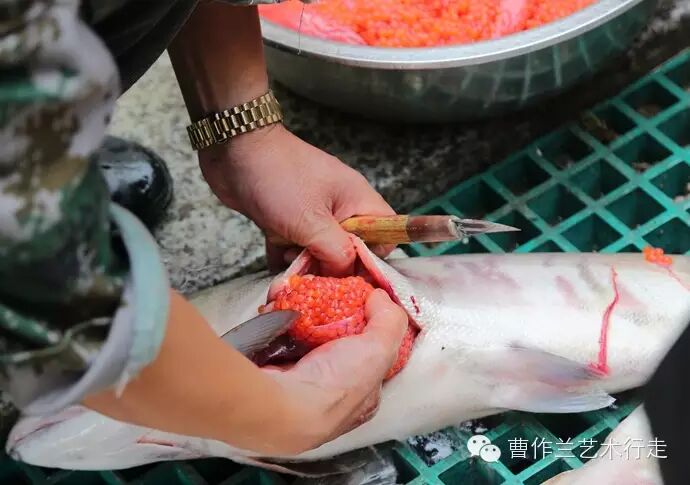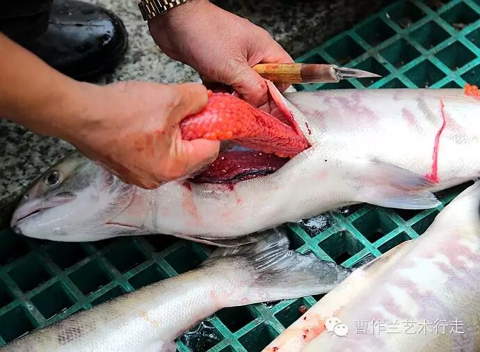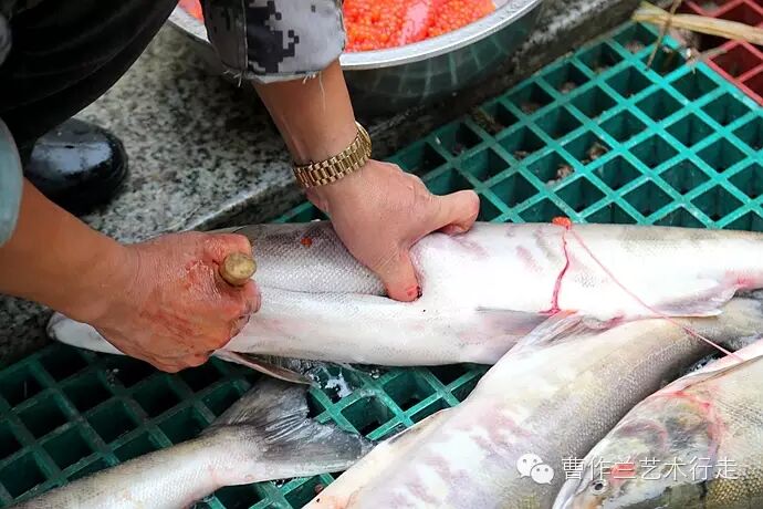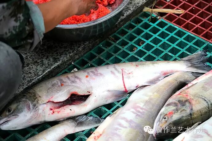 我们只有在鱼市场,才看到外地人难得一见的各种江鱼,还看到大马哈鱼现场取鱼籽和现场炒鱼松。