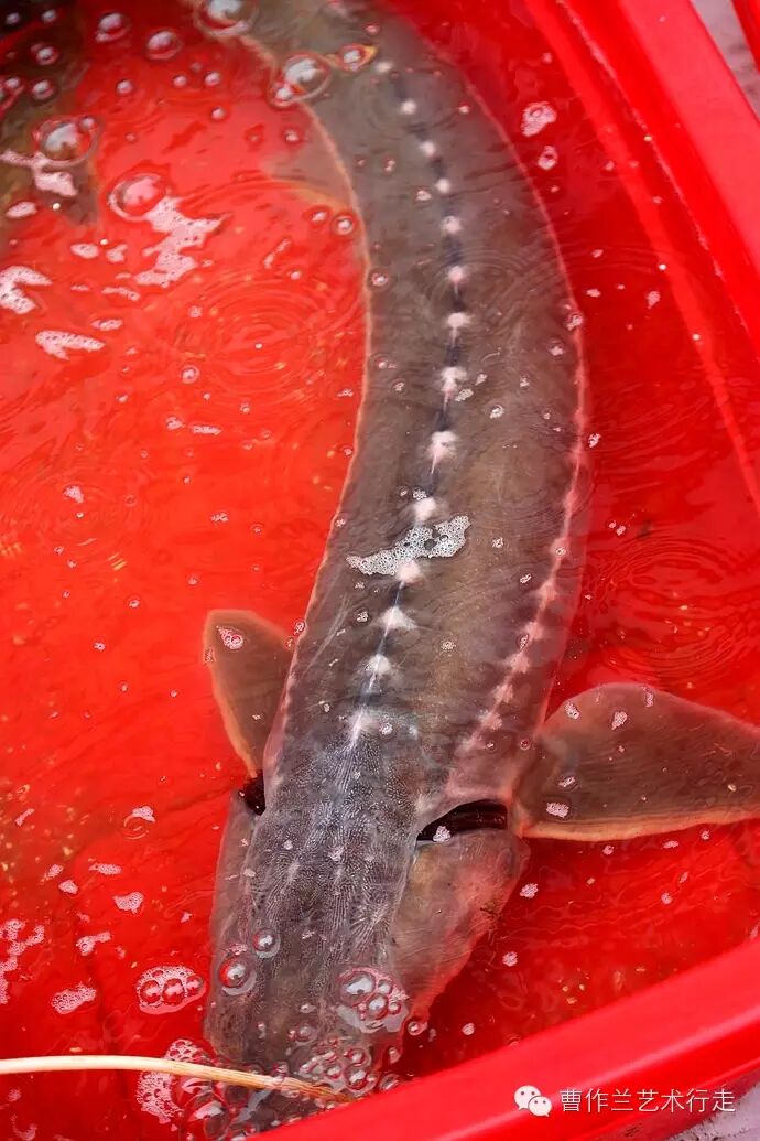 这就是鲟鱼了。它有淡水鱼王的美称。肉鲜味美,骨脆而香,全身几乎没有废料,胃、唇、骨、鳔、籽都是烹制名菜的上等原料。它的生命周期有百年之久,有活化石之称。