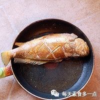 5. 入煎好的黄鱼转中火煮15分钟左右。收干汤汁后撒葱花。