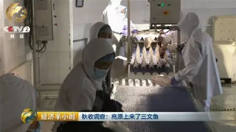 下午两点半,罗占元捕捞的三文鱼被迅速运往加工厂加工,在这条流水线上,各个环节的工人,其实都是龙羊峡镇的村民