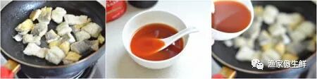 用中火煎至鱼块二面金黄。将蕃茄酱,生抽,糖,水及适量的盐调匀成料汁。倒入煎好的鱼块中。