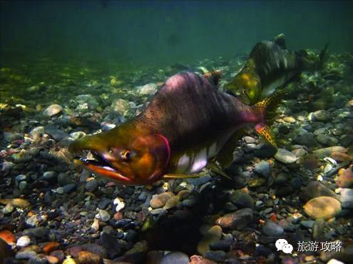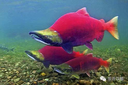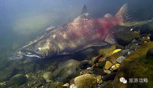 最红的洄游三文鱼是红鲑(Sockeye),北美西海岸加拿大BC省内路当之无愧是最好的观赏点。