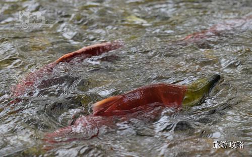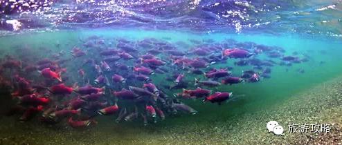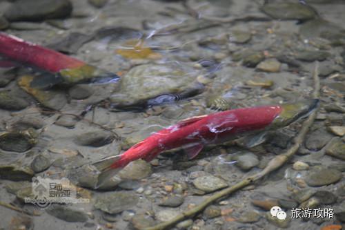 好啦,重点来了,看三文鱼洄游当然要看红的发亮的那种!