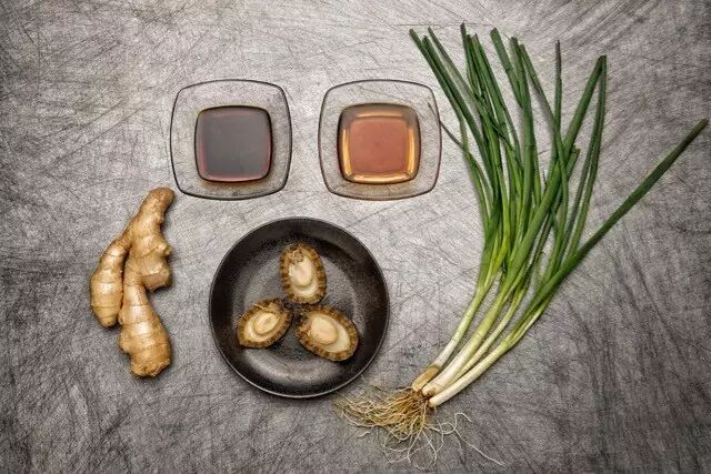 将3只鲍鱼(干品鲍鱼需水发)取肉,放入温水中煮2分钟;取一锅,放入100ml水、35ml生抽、10g姜、20g葱和煮过的鲍鱼,煮开后盛出,放入冰箱中冷藏。