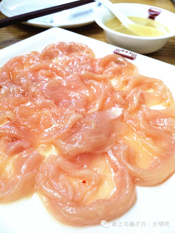 这道菜一眼看过去,还以为的千层肚。牛千丝就是牛肠,吃起来软软的,细细嚼起来,不失牛肠的弹性。乐乐了解,在乌鲁木齐这是第一家有涮牛肠的哦,吃货们,来尝鲜吧!