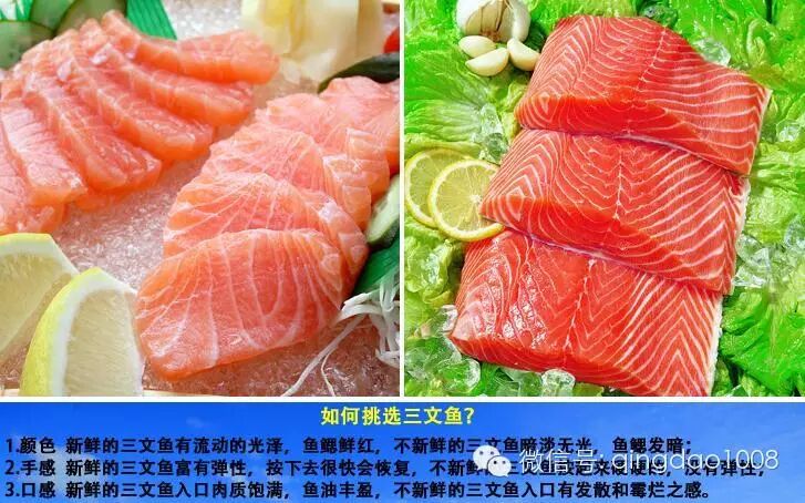 二、3招巧辩真假三文鱼: