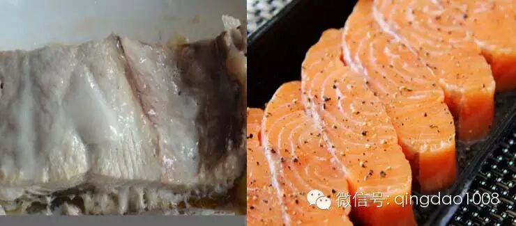 3:熟之后的三文鱼与其掺假鱼对比