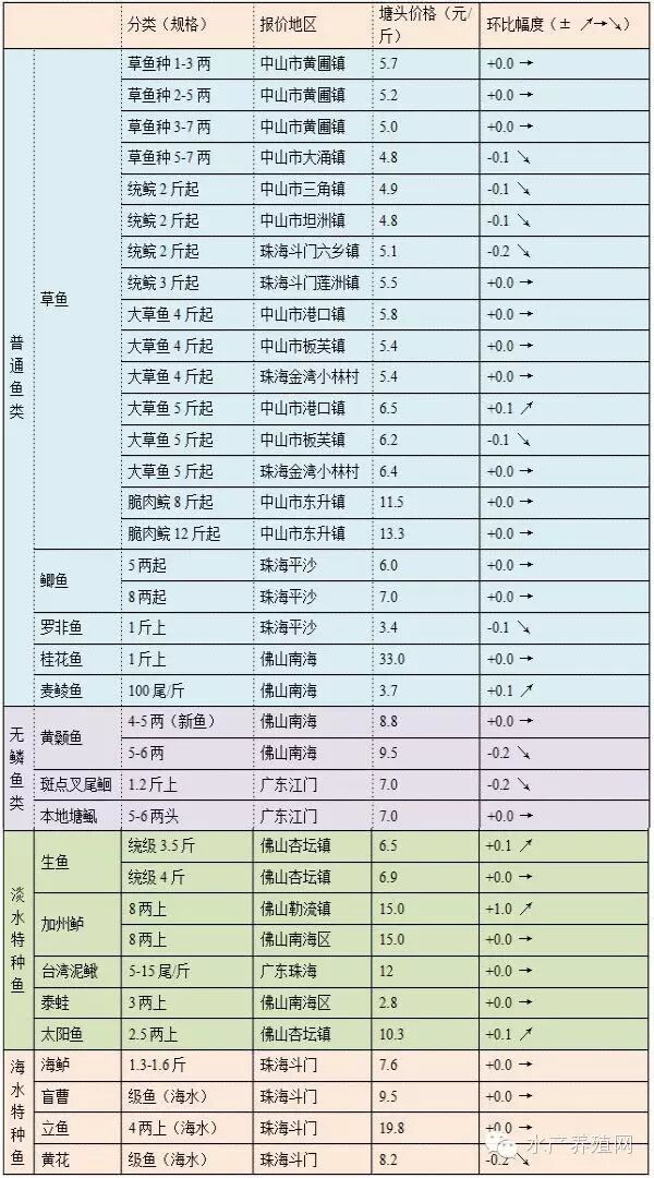 | 草鱼 | 2-3斤 | 4.1-4.2元/斤 | 4.1-4.2元/斤 |