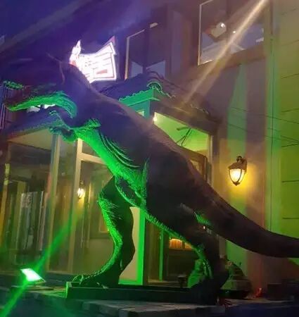 看到门口会动会叫的大恐龙不要怕,他只是邀请来撸串而已。