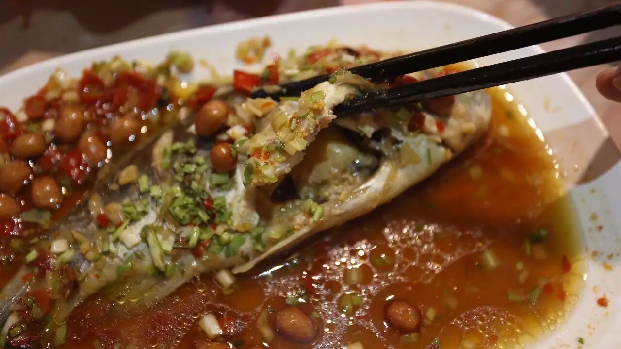 show妹最直接的感受就是,凉拌好了的鲫鱼你能轻轻一抿就将里面的小刺逼出来,肉质很柔软鲜美,咽下去之后,嘴巴里还会带有酱汁的咸香辣味。另外,铺垫用的花生米口感也特别清脆。