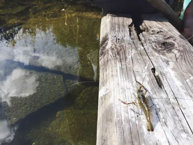 小河虾被钓上后