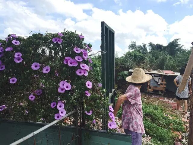 门外的喇叭花蹒跚在这个围栏里,