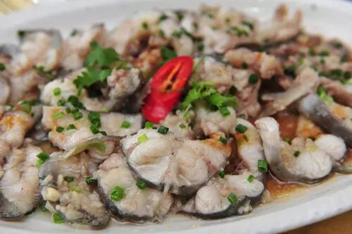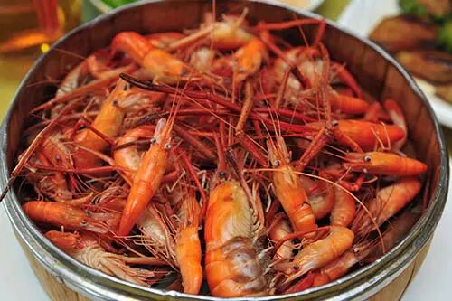 除了吃鱼,吃河鲜也离不开河虾。除了清明时节,西江在农历十月也盛产虾,称作秋虾,个头特别大。西江虾以清蒸后蘸味料吃最得真味。正宗的西江虾都有两个长长的钳子,这都是在湍急的西江中“锻炼”出来的。由于经常做运动,西江虾肉质结实,味道鲜甜,让资深吃货频频点赞。