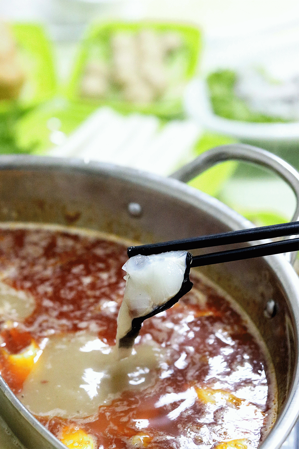 另一种吃法是火锅涮鱼片,肉骨熬了足足12小时的高汤单喝也超级鲜,不过我觉得最简单的清水锅也已经很酷了。
