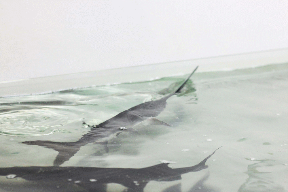看其外观,鱼嘴扁平酷似鸭嘴,故名鸭嘴鲟鱼,还是目前仅能食用的几种鲟鱼中口感最好的一种。