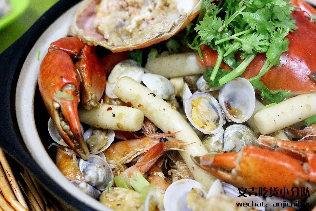 ![]() 这样一个巨型青蟹煲,配两碗饭可以三个人吃了,底下是明虾蛤蜊年糕,上面是两只足斤大青蟹,鲜甜味从虾蟹里渗到年糕,吃起来着实过瘾。