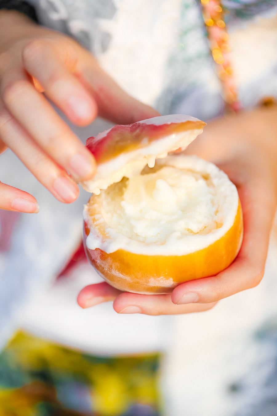 好辣好辣,来个冰淇淋解辣又降温。秘制家的冰淇淋非常可爱,它把每个水果挖空再酿入冰淇淋,满口淡淡果香的清凉感觉。![]()