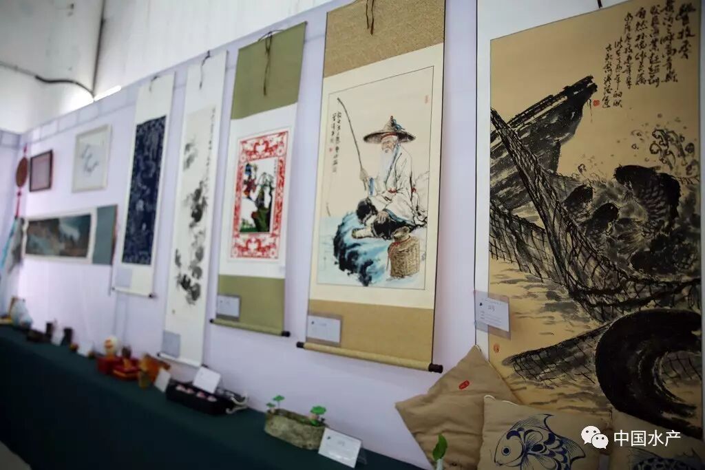 在中国(淄博)首届金鱼大赛暨金鱼产业高峰论坛举办期间,由山东省淄博市水利与渔业局、旅发委等部门共同组织了“鱼•淄味”渔文化旅游产品展评活动,面向社会公开征集渔文化旅游产品稿件,并组织展评优秀作品。自启动征稿以来,社会各界提报作品近300件(套),涉及融入齐文化元素、体现淄博休闲渔业特色的陶瓷、琉璃、编织、拓印、手工本等、绘画、雕塑、喷绘家纺、刺绣、服装、服饰、生活用品等多个种类。经遴选,在大赛共陈列展出60余件(幅)优秀作品,其中,“鱼戏”系列丝绸手绘品,以“鱼”为主题,以淄博丝绸为载体,手绘各种“鱼戏图”,有真丝团扇、真丝披肩、抱枕;“连年有余”琉璃瓶,以淄博琉璃特有的塑彩瓶镌刻,形成海浪礁石及三条龙鱼图案,似神龙腾浪;“姜太公钓鱼”剪纸作品,以人们耳熟能详的“姜太公钓鱼”典故为蓝本,以太公、鱼、莲等寓意齐鲁大地盛邀精英贤士。这些优秀作品在大赛现场集中展出后,有望被审定成为淄博“渔文化”旅游纪念品标志性产品。