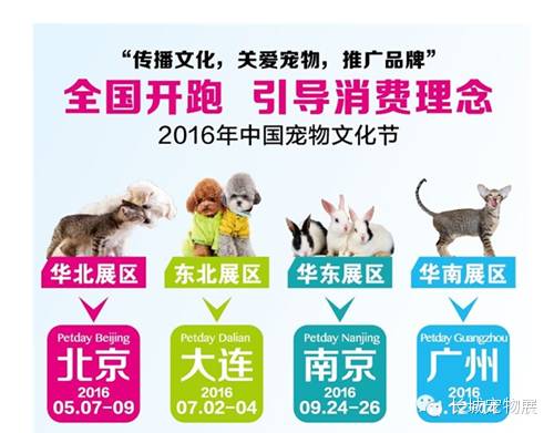 中国首个宠物主题巡回展,打造中国的宠物文化大节日。2016年足迹遍布北京,大连,南京和广州。其中广州宠物文化节(11.12-14)为全球首次B2B与B2C同期同馆不同厅举办,呈现中国宠物行业最全面行业面貌。