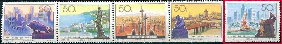 1994-20《经济特区》分别表现了5个经济特区的建设成就,海南美丽的传说“鹿回头”雕塑原形与海南建设景象结合,让人看到了如神话一般蓬勃发展的海南。