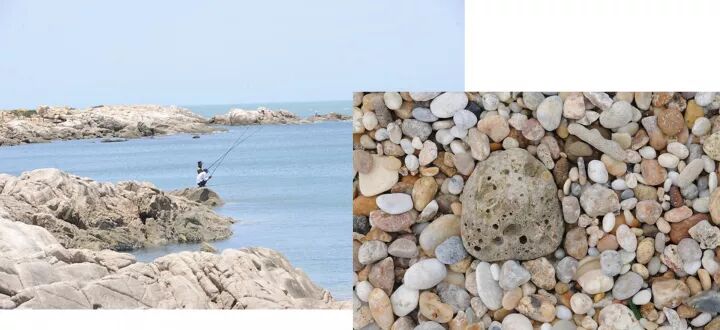 ※ 鱼鳞洲,位于海南东方,是海南岛的西南角。这里在古代便是旅游胜地,也是兵家要地。至今,鱼鳞洲山头上仍有碉堡,据说是日本鬼子留下来的。鱼鳞洲灯塔下的海滩上,密布着形状奇特的花岗岩礁石,礁石被海水长期冲刷,形成独特的造型和石臼。黄昏时,看日落非常壮观、迷人。