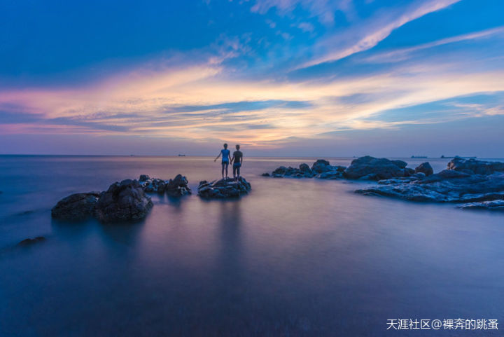 ※ 棋子湾在海南岛西海岸区域,位于昌江西部。这里没有熙熙攘攘的游客,水清见底,沙细质软,洁白如银,是难得的天然浴场,也是光浴和沙浴的理想之地。海湾沿岸奇峰林立,怪石嶙峋,色彩各异,银色的沙滩与湛蓝大海面连成一片,让人的心灵舒畅轻松。