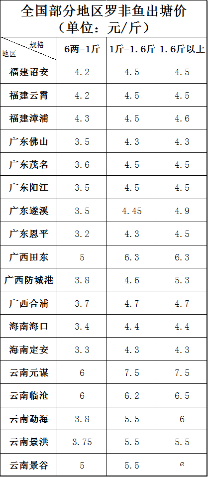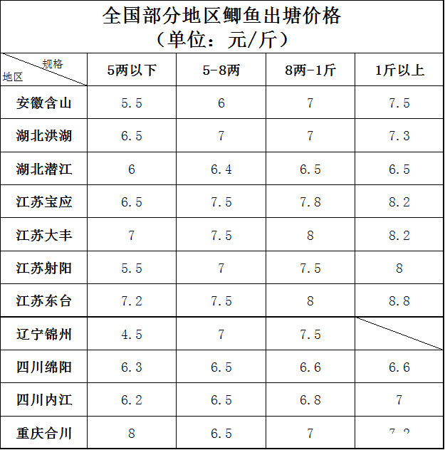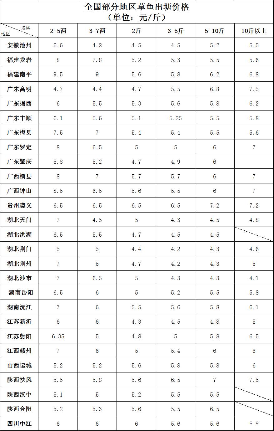 以下是全国部分地区淡水鱼出塘价格,有出鱼需要的朋友可以参考:
