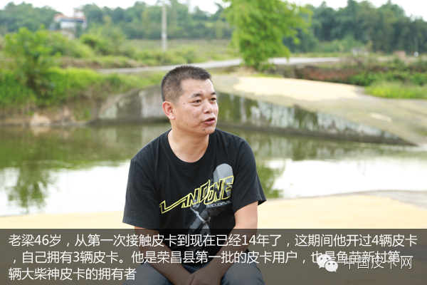 采访就在老梁家门口的鱼塘边开始,这里风景如画,宛如世外桃源,老梁对我们娓娓道来,侃侃而谈,1个多小时的时间很快过去,我很惊讶于老梁的健谈和热情,丝毫没有农村朋友的腼腆和害羞,用他的话说:“一说起皮卡我就来劲了,对于皮卡我可说的东西太多了!”