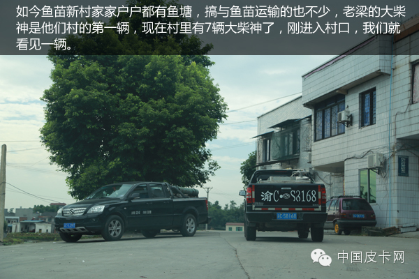 此言非虚,来到鱼苗新村,我们首先看见了一辆和老梁一模一样的大柴神皮卡停在村口。