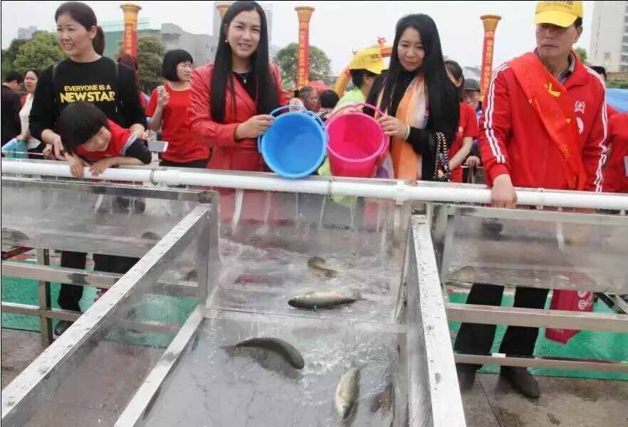 精彩有趣的放鱼活动,在市委副书记张严的宣布下开始了,在场的热心企业单位、热心市民在市委副书记张严的带领下,兴致勃勃、有次序地排队领取鱼苗,并通过放鱼槽把鱼苗放生在湘江里。
