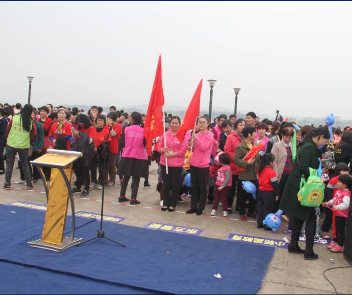 东方爱婴早教亲子园和潇湘艺苑凤凰幼儿园的老师和家长们有序的排好队伍等待活动正式开始
