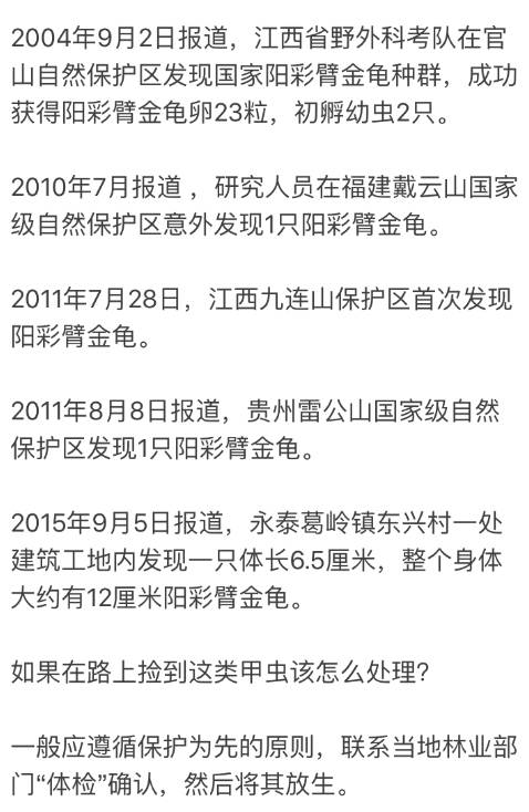 1982年,中国宣布阳彩臂金龟灭绝。