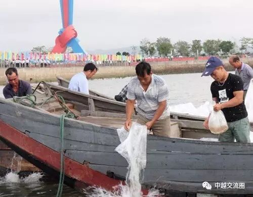 2017中越北部湾渔业资源联合增殖放流与养护活动5月8日在广西东兴市中越界河北仑河口举行。当天,中越两国代表共向北部湾水域投放石斑鱼、真鲷、黑鲷等鱼类苗种超过4100万尾,将有效推动北部湾渔业可持续发展。
