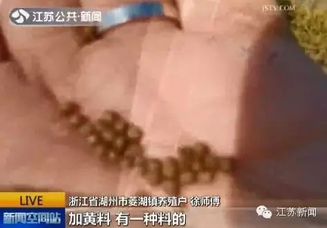 随后,记者在当地找到了鱼饲料销售点,说起徐师傅提到的黄料,销售点的老板说,其实就是黄色素。