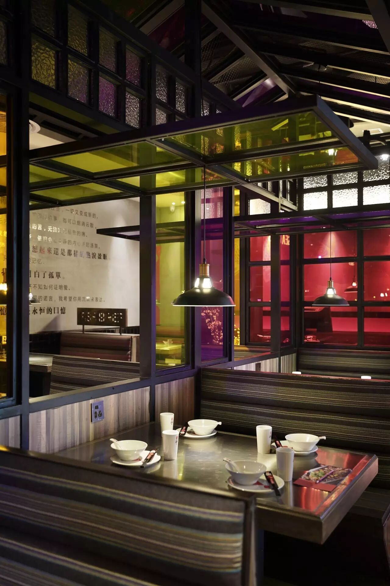 运用拼贴手法加入彩色玻璃和红黑釉面砖,