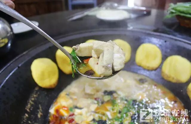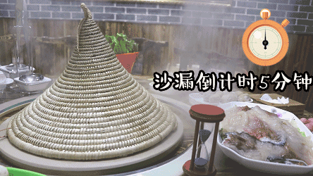 柴火烧旺,炒香料,再放汤,然后新鲜的鱼放进去煮。一个专门的漏斗计时,我们点了条雄鱼和几斤黄鸭叫,味道还是非常不错的。鱼吃完后还可以下一些喜欢的配菜。