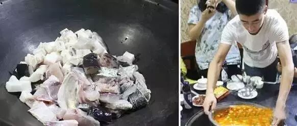 柴火烧旺,炒香料,再放汤,然后新鲜的鱼放进去煮。一个专门的漏斗计时,我们点了条雄鱼和几斤黄鸭叫,味道还是非常不错的。鱼吃完后还可以下一些喜欢的配菜。