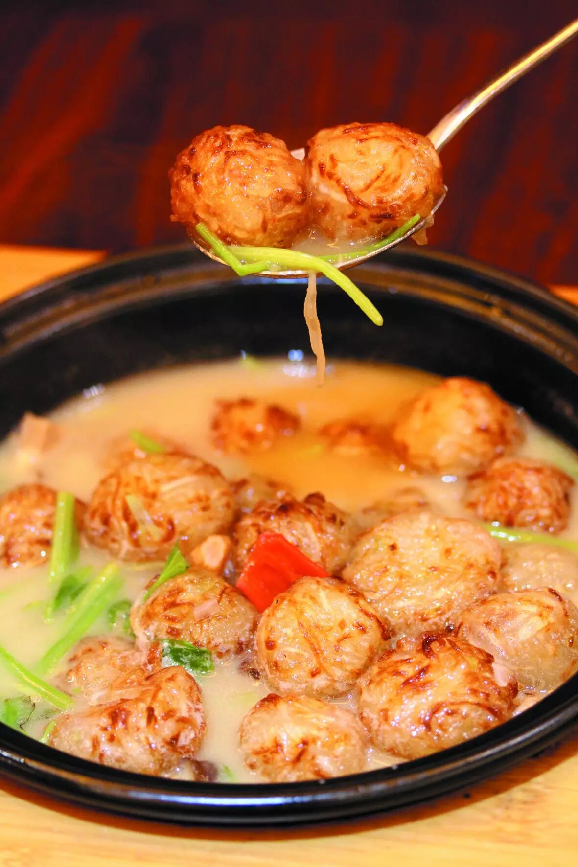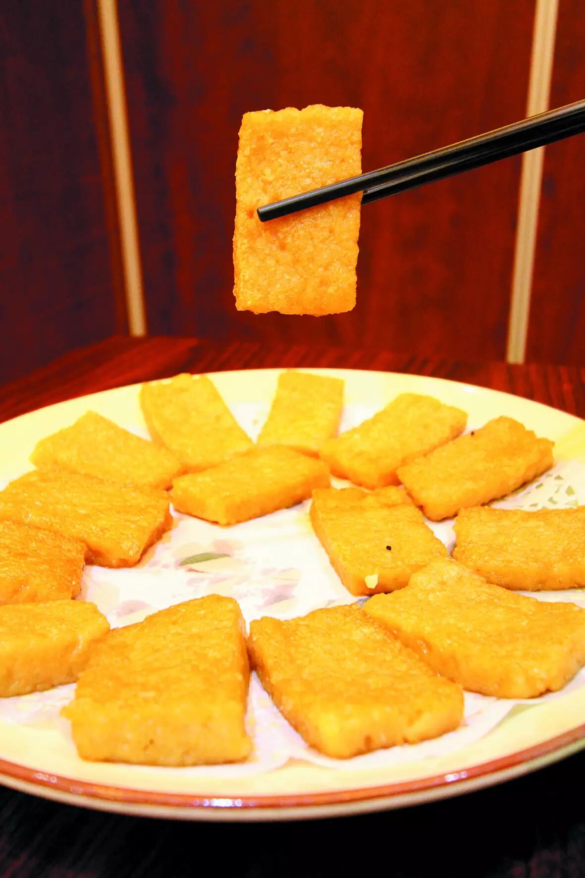 不过,传统的“萝卜丸”制作时流失了许多原味的“萝卜汁”,而为了保存萝卜的原汁原味,厨师制作时先将渗出的“萝卜汁”保存起来,萝卜丸进行拉油,捞起后加入“萝卜汁”、冬菇、芹菜进行焖煮。这样,就能将“萝卜汁”重新逼入“萝卜丸”中。