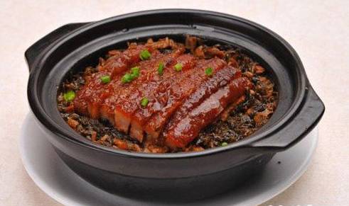 有人说,“没有吃过梅菜扣肉,就等于没有吃过客家菜”。梅菜扣肉一般在砂锅中烹煮,将切碎的梅菜放在锅底,五花肉切成块后扣到梅菜上面,然后盖上锅盖,焖熟入味即可。
