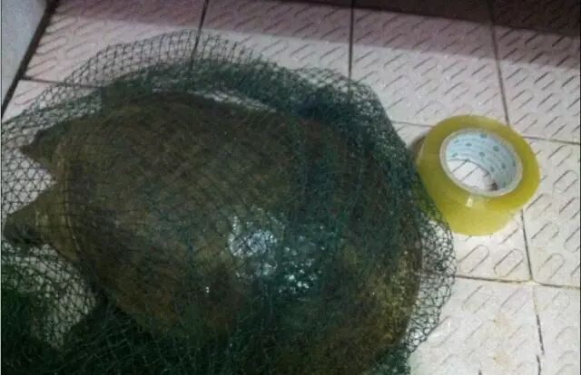 这只水鱼显得非常活跃,不停地往外爬。它伸着脑袋,张着大嘴的样子引来许多围观的女性尖叫连连。