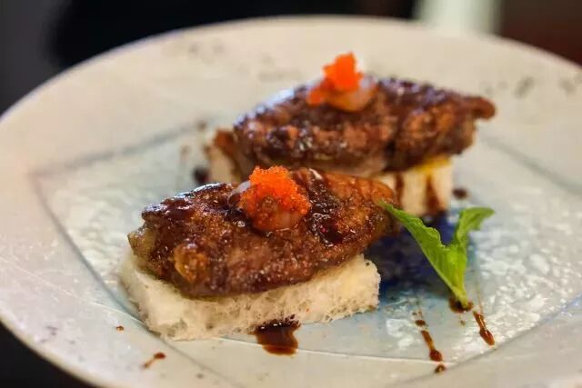 浓郁的酱汁搭配鱼籽和鹅肝,酥脆的面包让整个口感显得香且不腻~满满一大口超级满足!