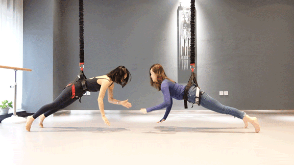 轻屿的特色课程bungee fitness是一项反地心引力的运动课程,锻炼核心、平衡、肌耐力、抗阻力,上一节课=跑步五小时,既能节约时间,又能省很多力气,还能得到高效训练,特别是还能美美哒,真是深得我心。